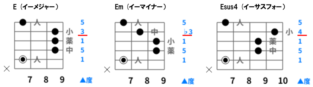 E/Em/Esus4を交互に鳴らした感じは下記のとおり(Emがちゃんと鳴ってなくてスミマセン)